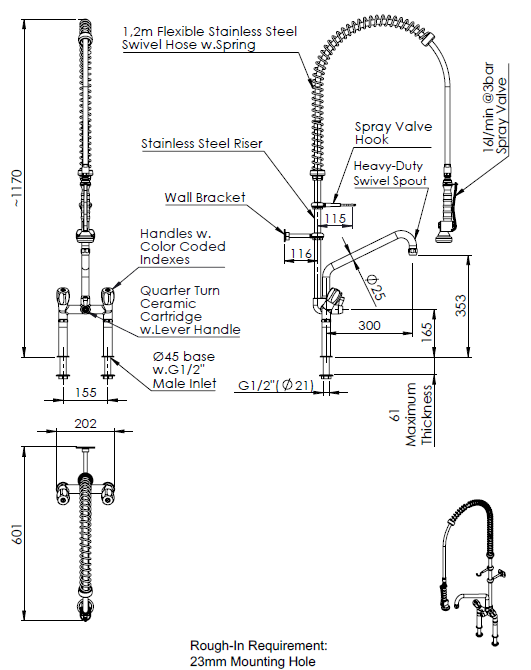Laitteet » Astianpesu & esikäsittely » Esipesusuihkut ja vesihanat » Esipesusuihku Klarco Europ, pöytäkiinnitteinen Esipesusuihku Klarco Europ, pöytäkiinnitteinen Ulkomitat: (l) 202 x (s) 601 x (k) 1170 mm.2-otesekoittaja.Esipesusuihkussa seinään kiinnitettävä tuki.Tuotekoodi: H136. Lisätiedot › Tarjouksen mukaan Määrä Lisää tarjouspyyntöön Katso mittakuva.Ulkomitat: (l) 202 x (s) 601 x (k) 1170 mm.2-otesekoittaja.Juoksuputken pituus 320 mm.Juoksuputken nokan korkeus 353 mm.Esipesusuihkussa seinään kiinnitettävä tuki.Tuotekoodi: H136. Näytä lisää tuotteitaEsipesusuihkut ja vesihanat tuoteryhmästä Tämäkin laite sopivasti rahoituksella Tutustu ›