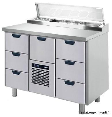 Kylmäkön työpöytä Restmec KLE 20012 Ulkomitat: (l) 2000 x (s) 650 x (k) 900/1050 mm.Kannen takaosassa on kallistettu kylmäkaukalo 5 x GN 1/3-150 ja 1 x GN 1/6-150 astioille.12 kpl kylmävetolaatikoita, joiden kapasiteetti on GN 1/1-150. OSTA Kylmäkön työpöytä Porkka CL-P/S-3-CDE-3-3 Ulkomitat: (l) 1660 x (s) 650 x (k) 900/1010 mm.Kannen takaosassa on kallistettu kylmäkaukalo 4 x GN 1/3-150 astioille.10 kpl kylmävetolaatikoita, joiden kapasiteetti on 9 x GN 1/1-150 GN ja 1 x GN 1/1-200. OSTA Kylmäkön työpöytä Porkka CL-P/S-3-3-CHE-3-3 Ulkomitat: (l) 2060 x (s) 650 x (k) 900/1010 mm.Kannen takaosassa on kallistettu kylmäkaukalo 5 x GN 1/3-150 ja 1 x GN 1/6-150 astioille.12 kpl kylmävetolaatikoita, joiden kapasiteetti on GN 1/1-150 astioita. OSTA Kylmäkön työpöytä Porkka CL-P/S-1-CDE-3 Ulkomitat: (l) 1260 x (s) 650 x (k) 900/1010 mm.Kannen takaosassa on kallistettu kylmäkaukalo 3 x GN 1/3-150 ja GN 1 x 1/6-150 astioille.1 kpl kylmäkaappi ja 4 kpl kylmävetolaatikoita, joiden kapasiteetti on 3 x GN 1/1-150 GN ja 1 x GN 1/1-200. OSTA Kylmäkön työpöytä Porkka CL-P/S-1-3-CHE-3-1 Ulkomitat: (l) 2060 x (s) 650 x (k) 900/1010 mm.Kannen takaosassa on kallistettu kylmäkaukalo 5 x GN 1/3-150 ja 1 x GN 1/6-150 astioille.2 kpl kylmäkaappeja ja 6 kpl kylmävetolaatikoita, joiden kapasiteetti on 6 x GN 1/1-150 astioita. OSTA