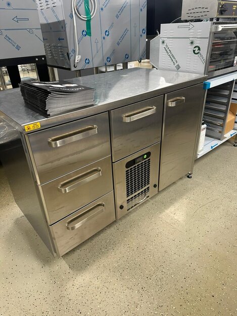Laatikoiden kapasiteetti on 1 x GN 1/1-200 ja 3 x GN 1/1-150.