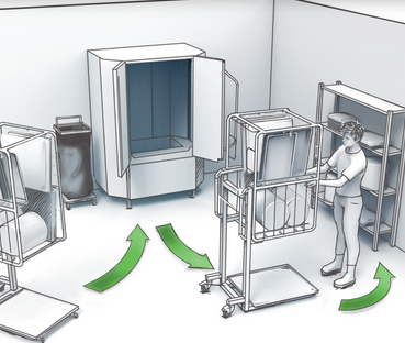 Höyrynvähennys, joka varmistaa miellyttävämmän työympäristön henkilökunnalle ja pienentää patojen patojen pesualueen tuuletusvaatimuksia. Höyrynvähennyksen käyttö lisää 60 sekuntia lyhyen ja normaalin pesujakson kestoon.