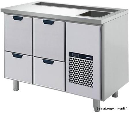 Baarimestarin työpöytä Restmec BMO 1200, jääaltaalla ja pullotelineellä Ulkomitat: (l) 1205 x (s) 700 x (k) 900 + takanosto 50 mm.Sähköteho: 0,4 kW / 230 V.Pöydän alla 2 kpl kylmävetolaatikoita, joihin voi laittaa pulloja tai juomalaatikoita.Pöydän päällä kaksi pullotelinettä ja jääallas jakolevyillä. OSTA Baarimestarin työpöytä Restmec BM 1205 Ulkomitat: (l) 1200 x (s) 650 x (k) 900 mm.Sähköteho: 0,4 kW / 230 V.5 kpl juomakoreille mitoitettua vetolaatikkoa.Työpöydän kannessa on käyttäjään päin kallistettu pullokouru sekä allas pulloille tai jääpaloille.Tuotekoodi: 1211. OSTA Baarimestarin työpöytä Porkka CL-B2S-2-2-2-CE Ulkomitat: (l) 1660 x (s) 650 x (k) 900 mm.Sähköteho: 0,25 kW / 230 V.6 kpl juomakoreille mitoitettua vetolaatikkoa.Kannessa on käyttäjään päin kallistettu jäähdytetty pullokouru sekä eristetty ja viemäröity kylmäallas pulloille tai jääpaloille. OSTA Baarimestarin työpöytä Restmec BMO 2400, jääaltaalla ja pullotelineellä Ulkomitat: (l) 2405 x (s) 700 x (k) 900 + takanosto 50 mm.Sähköteho: 0,4 kW / 230 V.Pöydän alla 5 kpl kylmävetolaatikoita, joihin voi laittaa pulloja tai juomalaatikoita.Pöydän päällä kaksi pullotelinettä ja jääallas jakolevyillä. OSTA Baarimestarin työpöytä Restmec BMO 1600, jääaltaalla ja pullotelineellä Ulkomitat: (l) 1605 x (s) 700 x (k) 900 + takanosto 50 mm.Sähköteho: 0,4 kW / 230 V.Pöydän alla 3 kpl kylmävetolaatikoita, joihin voi laittaa pulloja tai juomalaatikoita.Pöydän päällä kaksi pullotelinettä ja jääallas jakolevyillä. OSTA