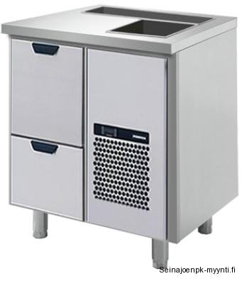 Baarimestarin työpöytä Restmec BM 803 Ulkomitat: (l) 800 x (s) 650 x (k) 900 mm.Sähköteho: 0,4 kW / 230 V.3 kpl juomakoreille mitoitettua vetolaatikkoa.Työpöydän kannessa on käyttäjään päin kallistettu pullokouru sekä allas pulloille tai jääpaloille.Tuotekoodi: 1285. OSTA Baarimestarin työpöytä Restmec BM 2009 Ulkomitat: (l) 2000 x (s) 650 x (k) 900 mm.Sähköteho: 0,6 kW / 230 V.8 kpl juomakoreille mitoitettua vetolaatikkoa ja kylmäkoneen päällä oleva 1 kpl vetolaatikko esimerkiksi tölkeille.Työpöydän kannessa on käyttäjään päin kallistettu pullokouru sekä allas pulloille tai jääpaloille. OSTA Baarimestarin työpöytä Restmec BM 1205 Ulkomitat: (l) 1200 x (s) 650 x (k) 900 mm.Sähköteho: 0,4 kW / 230 V.5 kpl juomakoreille mitoitettua vetolaatikkoa.Työpöydän kannessa on käyttäjään päin kallistettu pullokouru sekä allas pulloille tai jääpaloille.Tuotekoodi: 1211. OSTA Baarimestarin työpöytä Restmec BMO 2000, jääaltaalla ja pullotelineellä Ulkomitat: (l) 2005 x (s) 700 x (k) 900 + takanosto 50 mm.Sähköteho: 0,4 kW / 230 V.Pöydän alla 4 kpl kylmävetolaatikoita, joihin voi laittaa pulloja tai juomalaatikoita.Pöydän päällä kaksi pullotelinettä ja jääallas jakolevyillä. OSTA Baarimestarin työpöytä Porkka CL-B2S-2-CE Ulkomitat: (l) 860 x (s) 650 x (k) 900 mm.Sähköteho: 0,25 kW / 230 V.2 kpl juomakoreille mitoitettua vetolaatikkoa.Kannessa on käyttäjään päin kallistettu jäähdytetty pullokouru sekä eristetty ja viemäröity kylmäallas pulloille tai jääpaloille. OSTA