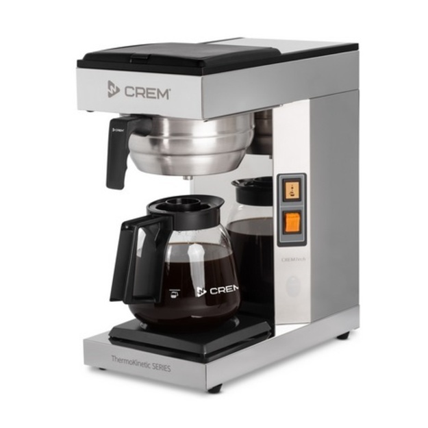 Kahvinkeitin Crem ThermoKinetic DA-4 TK, vesiliitäntä malli Ulkomitat: (l) 410 x (s) 410 x (k) 428 mm.Sähköteho: 4,8 kW / 400 V.Lasikannun tilavuus on 1,8 litraa.Suodatusaika on noin 6 minuuttia per kannu.Kapasiteetti noin 30 litraa tunnissa.Tuotekoodi: 1015. OSTA Kahvinkeitin Crem ThermoKinetic A-2, vesiliitäntä malli Ulkomitat: (l) 205 x (s) 410 x (k) 428 mm.Sähköteho: 2,2 kW / 230 V.Lasikannun tilavuus on 1,8 litraa.Suodatusaika on noin 6 minuuttia per kannu.Kapasiteetti noin 15 litraa tunnissa.Tuotekoodi: 1010. OSTA Suodatinsuppilo Bravilor Bonamat Novo kahvinkeittimeen Muovia.Tuotekoodi: 4707. OSTA Kahvinkeitin Bravilor Bonamat Mondo Twin, käsitäyttöinen malli Ulkomitat: (l) 404 x (s) 406 x (k) 446 mm.Sähköteho: 3,46 kW / 230 V.Lasikannun tilavuus on 1,7 litraa.Suodatusaika on noin 6 minuuttia per kannu.Kapasiteetti noin 28 litraa tunnissa (noin 224 kuppia).Tuotekoodi: 1023. OSTA Kahvinkeitin Crem ThermoKinetic M-1, käsitäyttöinen malli Ulkomitat: (l) 205 x (s) 410 x (k) 428 mm.Sähköteho: 2,2 kW / 230 V.Lasikannun tilavuus on 1,8 litraa.Suodatusaika on noin 6 minuuttia per kannu.Kapasiteetti noin 15 litraa tunnissa.Tuotekoodi: 1041. OSTA