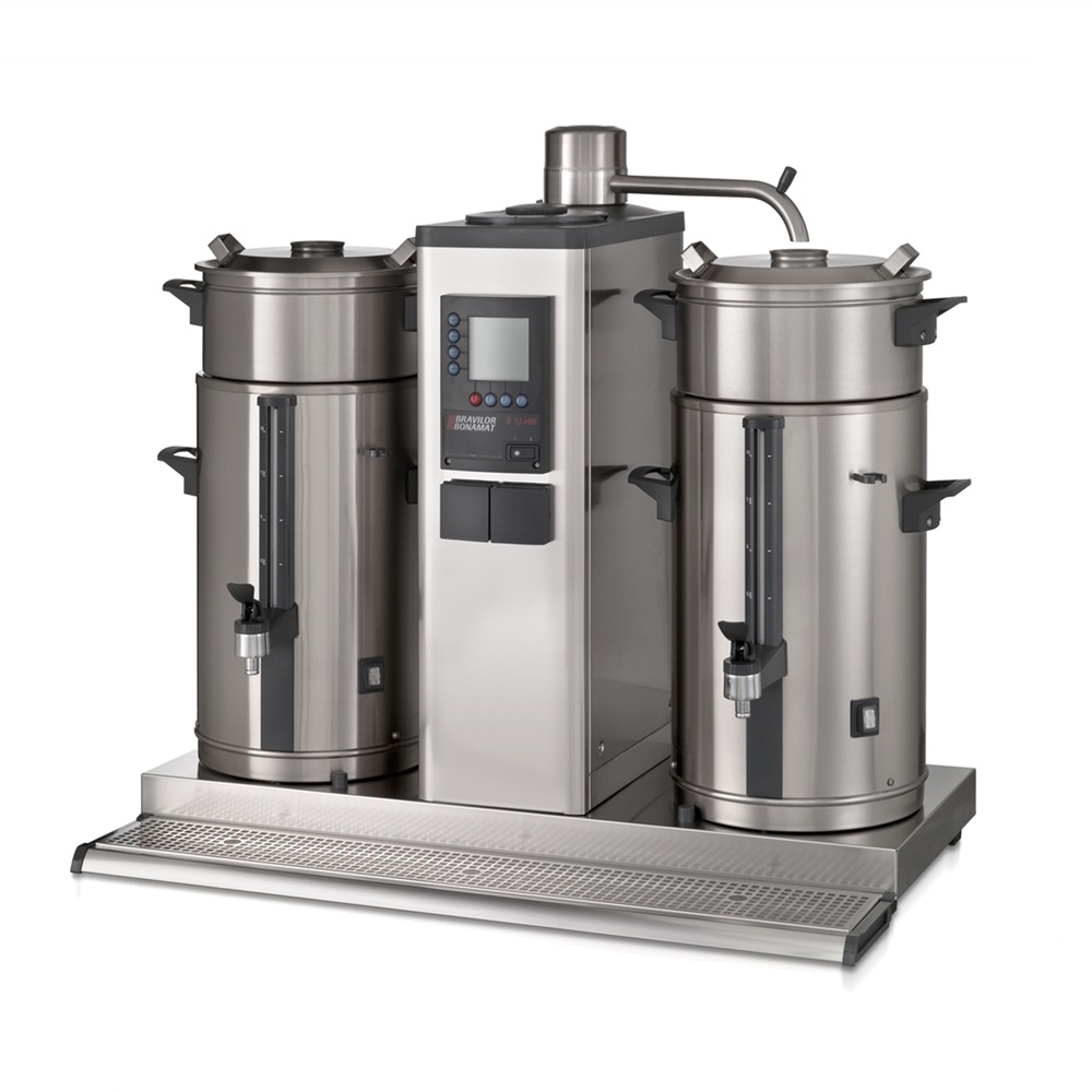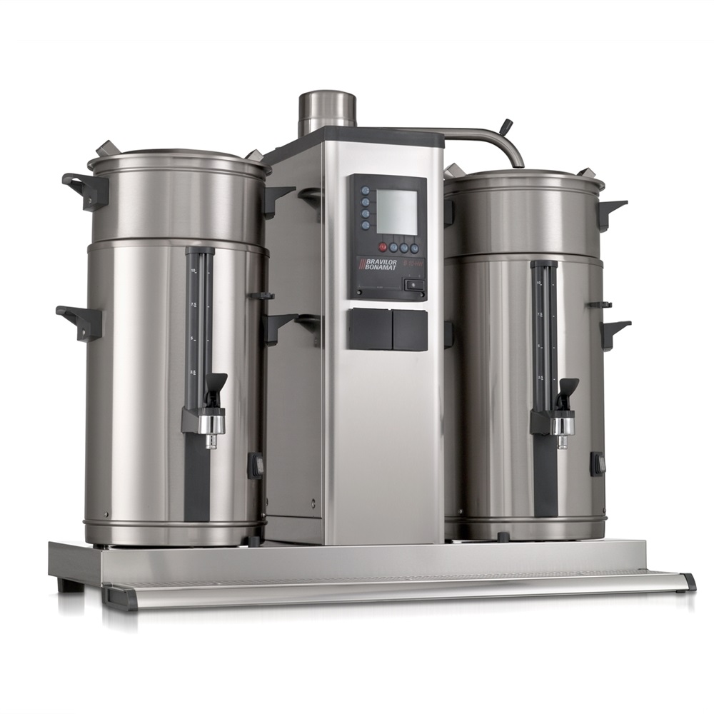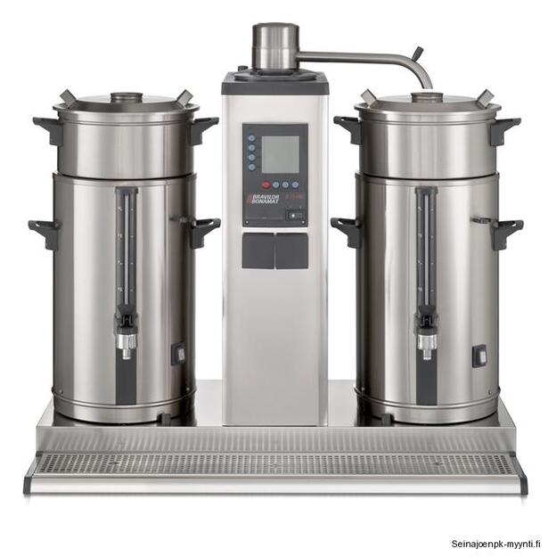 Laitteet » Kahvinvalmistus & baarilaitteet » Kahvinkeittimet ja lämpösäilyttimet » Säiliökahvinkeittimet » Säiliökahvinkeitin Bravilor Bonamat B10 Säiliökahvinkeitin Bravilor Bonamat B10 2 x 10 litran kahvisäiliöillä.Suodatusaika noin 10 minuuttia per säiliö.Ulkomitat: (l) 955 x (s) 512 x (k) 840 mmSähköteho: 6,18 kW / 400 V Lisätiedot › Tarjouksen mukaan Määrä Lisää tarjouspyyntöön Videolla kuumavesihanalla varustettu B10 HW säiliökahvinkeitin. Videosta poiketen B10 malli on ilman kuumavesihanaa.Ulkomitat: (l) 955 x (s) 512 x (k) 840 mmSähköteho: 6,18 kW / 400 V.Kylmävesiliitäntä / automaattinen vedenotto.Kahvinkeittimessä on digitaalinen ohjauspaneeli, josta voit valita keittomäärän.Kahvinkeitto tapahtuu yhteen säiliöön kerrallaan.Suodatusaika noin 10 minuuttia per säiliö.Keittimessä on ominaisuutena äänimerkki keiton päätyttyä.Kahvinkeittimen valmistusteho kokonaisuudessaan noin 60 litraa tunnissa.Vakiovarusteena paketissa on mukana 2 kpl säiliöitä ja 2 kpl suodatinyksiköitä, 2 kpl säiliöiden kansia ja tippa-allas.Säiliön tilavuus on 10,0 litraa. Säiliöt ovat varustettu hanoilla ja mittalasilla.Säiliöt ovat varustettu sähköjohdolla ja ne ovat nostettavissa esimerkiksi tarjoilulinjastoon. Näytä lisää tuotteitaSäiliökahvinkeittimet tuoteryhmästä Tämäkin laite sopivasti rahoituksella Tutustu ›
