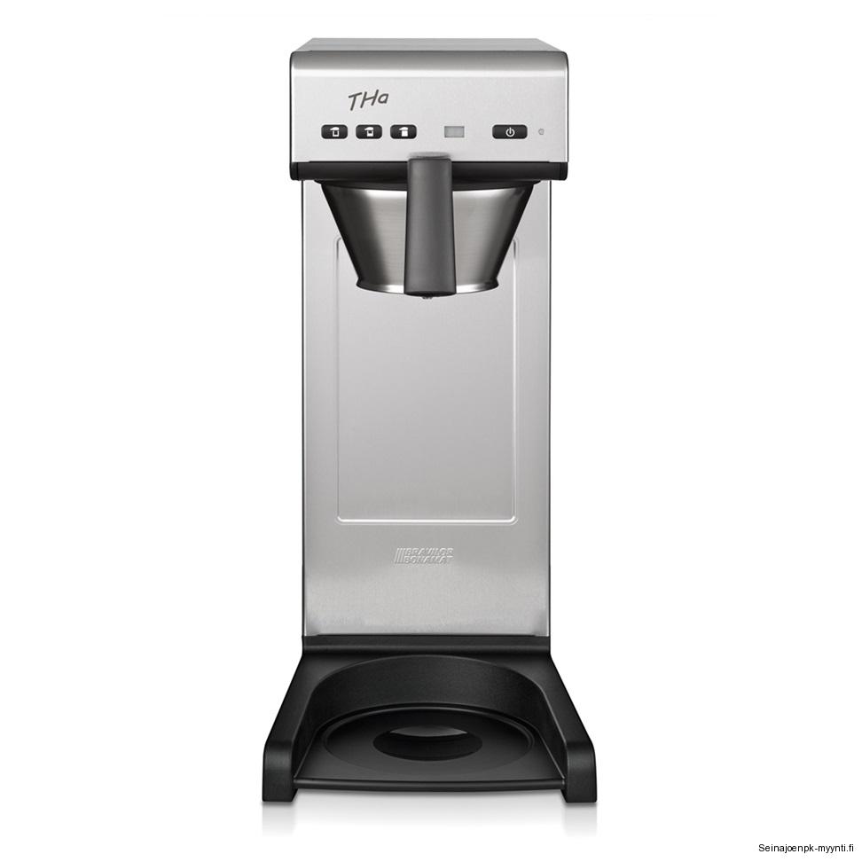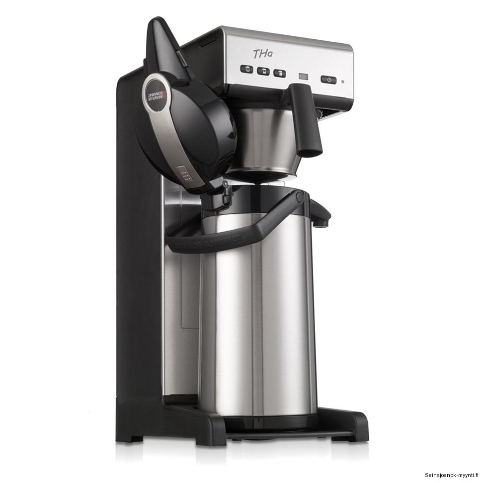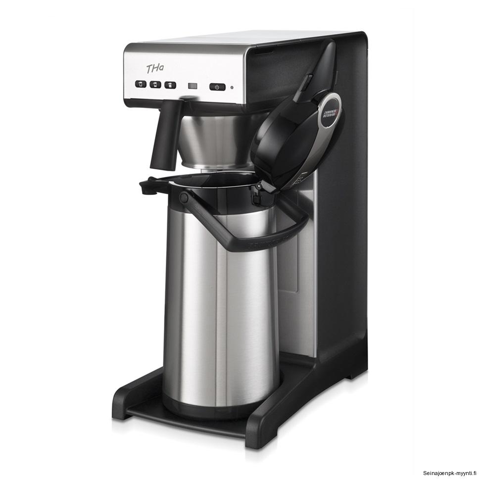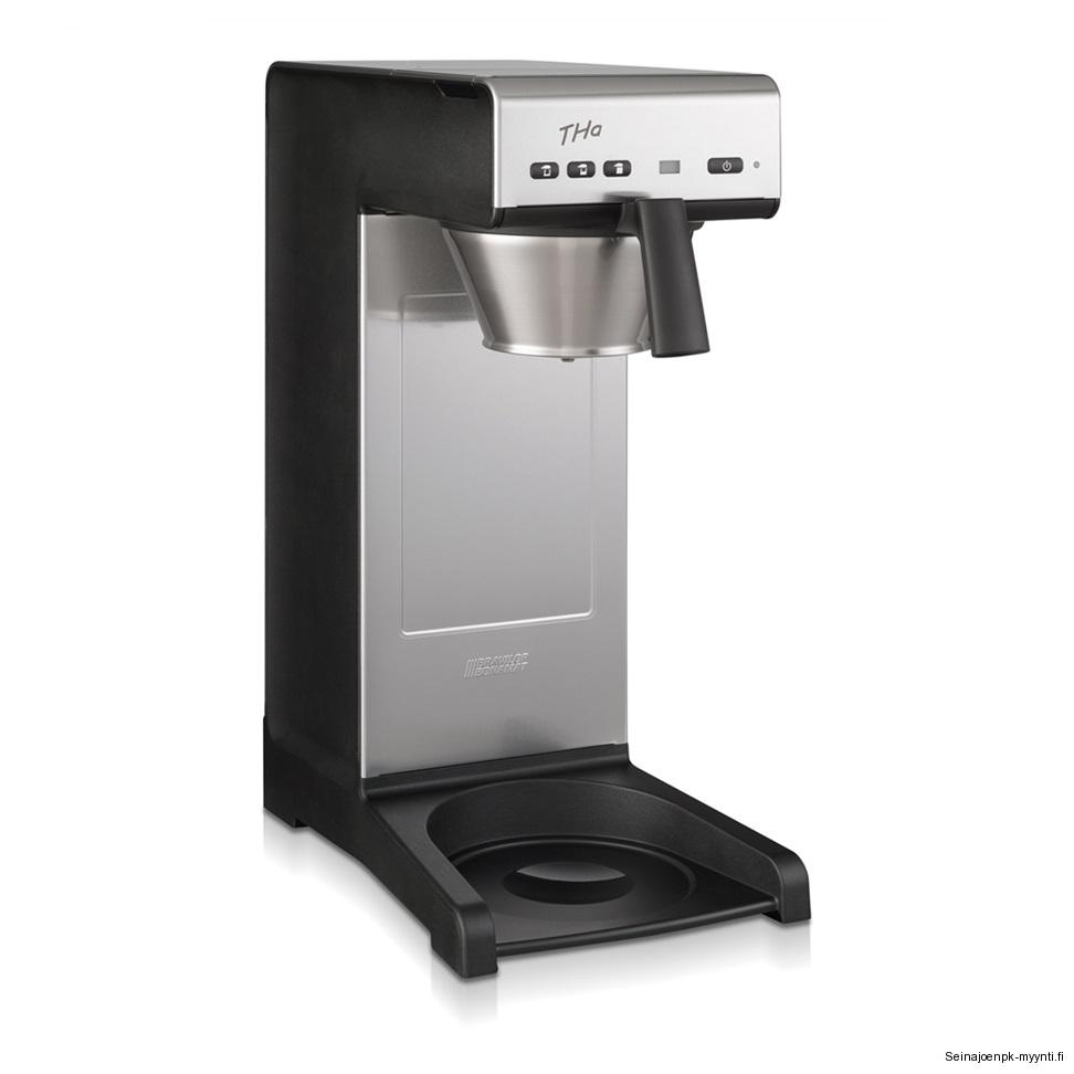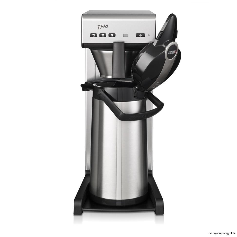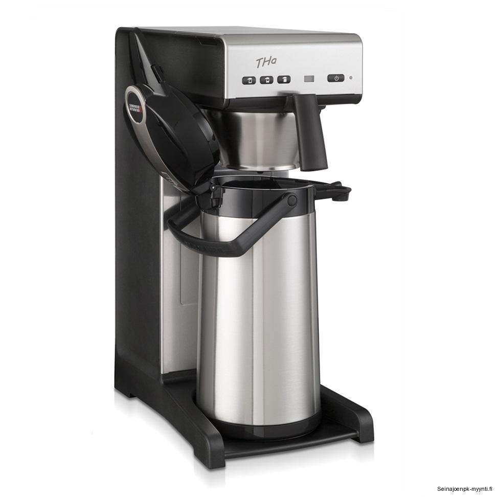 Laitteet » Kahvinvalmistus & baarilaitteet » Kahvinkeittimet ja lämpösäilyttimet » Termoskahvinkeittimet » Pumpputermos kahvinkeitin Bravilor Bonamat THa, vesiliitäntä malli Pumpputermos kahvinkeitin Bravilor Bonamat THa, vesiliitäntä malli Ulkomitat: (l) 235 x (s) 406 x (k) 545 mm.Sähköteho: 2,31 kW / 230 V.Suodatusaika on noin 8 minuuttia per säiliö.Kapasiteetti on noin 18 litraa tunnissa (noin 144 kuppia).Vakiotoimitus ilman pumpputermosta.Tuotekoodi: 1039. Lisätiedot › Tarjouksen mukaan Määrä Lisää tarjouspyyntöön Ulkomitat: (l) 235 x (s) 406 x (k) 545 mm.Sähköteho: 2,31 kW / 230 V.Vakiotoimitus ilman pumpputermosta.Kylmävesiliitäntä.Kahvinkeittimessä on ohjauspaneeli automaattista vedentäyttöä varten.Ohjauspaneelin avulla voit säätää kullakin kerralla suodatettavan kahvin määrän. Suodatusvaihtoehtoja on kolme. Täysi säiliöllinen: 2,2 litraa. Puoli säiliöllistä: 1,1 litraa Pieni säiliöllinen: 0,55 litraaSuodatusaika on noin 8 minuuttia per säiliö.Kahvinkeittimessä on ominaisuutena äänimerkki keiton päätyttyä.Ohjauspaneelissa on merkkivalo, kun keitin tarvitsee kalkinpoiston.Kapasiteetti on noin 18 litraa tunnissa (noin 144 kuppia).Pumpputermos kahvinkeittimessä käytetään 90 mm suppilosuodatinpaperia.Tuotekoodi: 1039.Kahvinkeitin toimitetaan ilman pumpputermosta. Keittimeen sopii Bravilor Bonamat Furento 2,2 litran pumpputermos. Näytä lisää tuotteitaTermoskahvinkeittimet tuoteryhmästä Tämäkin laite sopivasti rahoituksella Tutustu ›