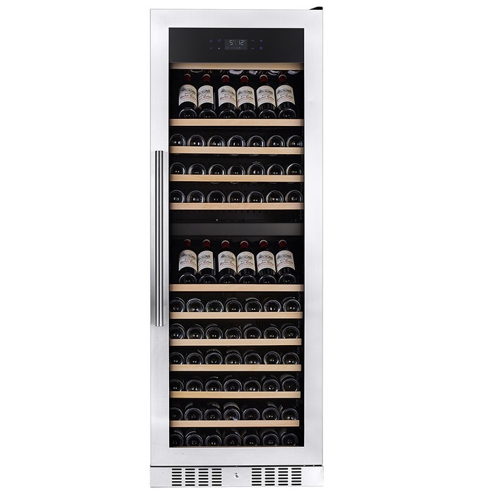 Laitteet » Kahvinvalmistus & baarilaitteet » Viini- ja panimokaapit » Viinikaappi Temptech Elegance E1000DX, kahdella lämpötilavyöhykkeellä Viinikaappi Temptech Elegance E1000DX, kahdella lämpötilavyöhykkeellä Ulkomitat: (l) 655 x (s) 680 x (k) 1835 mm.Sähköliitäntä: 180 W / 220-240 V.Kapasiteetti: 150 pulloa. Lisätiedot › Tarjouksen mukaan Määrä Lisää tarjouspyyntöön Elegantti viinikaappi optimaalisilla säilytysolosuhteillaSuuri viinikaappi kahdella lämpötilavyöhykkeellä (+5...+20°C ja +5...+20°C). Täydellinen viinikaappi ammattikäyttöön ravintoloihin ja viinibaareihin. Tässä viinikaapissa viinisi ovat turvallisessa säilössä oikeassa ja tasaisessa lämpötilassa, optimaalisessa ilmankosteudessa, sekä suojassa haitallisilta UV-säteiltä, hajuilta ja värinöiltä.Ulkomitat: (l) 655 x (s) 680 x (k) 1835 mm.Sähköliitäntä: 180 W / 220-240 V.Energialuokka: F.Kapasiteetti: 150 pulloa.Hyllyjen määrä 12 kpl.Tilavuus 490 litraa.Viilennyksestä huolehtii hiljainen kompressori jossa on matala äänitaso (40 dBA). Sen lisäksi että kompressori on hiljainen, se lepää erikoisvalmisteisilla värinänvaimentimilla jotka varmistavat että viini ei altistu haitalliselle tärinälle.Tuuletin kierrättää viileää ilmaa ja varmistaa tasaisen lämpötilan kaapin sisällä. Kaapissa syntyvä kondenssikosteus joka hyödynnetään ilmankierrossa ylläpitää oikean ilman kosteustasapainon.Aktiivihiilisuodattimella.LED-valot (viileä valkoinen / lämmin valkoinen).Näyttö ja kosketuspaneeli lämpötilan ja valaistuksen säätöön.Oven kätisyys oikea ja varustettu lukolla. Kätisyys ei ole vaihdettavissa.Ovi on 2-kerroslasiovi argonkaasulla.UV-suojattu lasiovi suojaa viiniä haitallisilta UV-säteiltä.Kylmäaine R600a.Viinikaapin paino: 128 kg. Näytä lisää tuotteitaViini- ja panimokaapit tuoteryhmästä Tämäkin laite sopivasti rahoituksella Tutustu ›