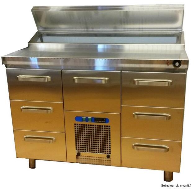 Laitteet » Kylmäsäilytys » Hampurilaisten kasauspöydät » Hampurilaisten kasauspöytä Restmec 1200 Hampurilaisten kasauspöytä Restmec 1200 Ulkomitat: (l) 1200 x (s) 650 x (k) 930 / 1020 mm.Pöydän kansi lämpenevä (hampurilaiset eivät jäähdy kasatessa).Kannen takaosassa kylmäkaukalo 3 x 1/3-150 ja 1 x 1/9-150 GN-astioille.7 kpl kylmävetolaatikkoja, joiden kapasiteetti on 1 x GN 1/1-200 ja 6 x GN 1/1-150. Lisätiedot › Tarjouksen mukaan Määrä Lisää tarjouspyyntöön Ulkomitat: (l) 1200 x (s) 650 x (k) 930 / 1020 mm.Sähköliitäntä: 0,7 kW / 230 V.Pöydän kansi lämpenevä (hampurilaiset eivät jäähdy kasatessa).Kannen työskentely-alan koko 1200 x 405 mm.Kannen takaosassa kylmäkaukalo 3 x 1/3-150 ja 1 x 1/9-150 GN-astioille.7 kpl kylmävetolaatikkoja, joiden kapasiteetti on 1 x GN 1/1-200 ja 6 x GN 1/1-150.Vakiotoimitus ilman kylmävetolaatikkojen ja kylmäkaukalon sisäastioita.Laatikot on varustettu 110 % avautuvilla kuulalaakeroiduilla teleskooppikiskoilla, joiden ansiosta laatikoilla asiointi käy vaivattomasti.Kylmävetolaatikoissa on magneettitiivisteet.Magneettitiivisteet ja teleskooppikiskot ovat irroitettavissa puhdistusta varten.Kalusteessa selkeä digitaalisella näytöllä varustettu lämpötilansäädin.Automaattinen sulatus.Kylmäkonekasetissa on irrotettava ja pestävä lauhdutusilmansuodatin.Kalusteen näkyvät osat ovat valmistettu 18/8 ruostumattomasta teräksestä.Lämpöeristeenä CFC-vapaa polyuretaani.Alla säätöjalat. Näytä lisää tuotteitaHampurilaisten kasauspöydät tuoteryhmästä Tämäkin laite sopivasti rahoituksella Tutustu ›