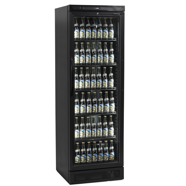 Laitteet » Kylmäsäilytys » Kylmäkaapit » Lasiovikylmäkaappi Tefcold CEV425-I, mustalla sisustalla Lasiovikylmäkaappi Tefcold CEV425-I, mustalla sisustalla Ulkomitat: (l) 595 x (s) 640 x (k) 1840 mm.Tilavuus (brutto/netto): 372 / 347 litraa.Ulkopinnat mustaa maalattua terästä, sisäosat musta ABS. Lisätiedot › Tarjouksen mukaan Määrä Lisää tarjouspyyntöön Tefcold CEV425 on musta lasiovellinen myyntikylmäkaappi. Kylmäteholtaan kaappi soveltuu monien eri tuotteiden myyntiin. Tyylikkään mustan runkovärin ansiosta kylmäkaappi soveltuu moniin eri käyttökohteisiin. Oveen integroidut vahvat led-rimat valaisevat myytävät tuotteet.Ulkomitat: (l) 595 x (s) 640 x (k) 1840 mm.Sisämitat: (l) 470 x (s) 440 x (k) 1555 mm.Liitäntäteho: 295 W / 230 V.Energiankulutus 1,6 kWh / vrk.Tehokas puhallinjäähdytys.Kylmäaine R600a.Tilavuus (brutto/netto): 372 / 347 litraa.Lämpötila-alue +2˚C…+10˚C.Mekaaninen termostaatti.5 säädettävää mustaa lankahyllyä (490 x 360 mm).Pystysuorat LED-rimat integroituna lasioveen.Erillinen valokytkin.Ovensaranat aina oikealla, kätisyys ei ole vaihdettavissa.Ovessa lukko.Ulkopinnat mustaa maalattua terästä, sisäosat musta ABS.Alla säätöjalat ja pyörät (2 kpl).Lämpötilaluokitus: 4.Toimintaolosuhteet: minimi +16°C, maksimi +30°C / 55% suhteellinen ilmankosteus. Näytä lisää tuotteitaKylmäkaapit tuoteryhmästä Tämäkin laite sopivasti rahoituksella Tutustu ›