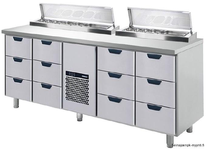 Kylmäkön työpöytä Porkka CL-P/S-1-CDE-3-3 Ulkomitat: (l) 1660 x (s) 650 x (k) 900/1010 mm.Kannen takaosassa on kallistettu kylmäkaukalo 4 x GN 1/3-150 astioille.1 kpl kylmäkaappi ja 7 kpl kylmävetolaatikoita, joiden kapasiteetti on 6 x GN 1/1-150 GN ja 1 x GN 1/1-200. OSTA Kylmäkön työpöytä Restmec KLE 804 Ulkomitat: (l) 800 x (s) 650 x (k) 900/1050 mm.Kannen takaosassa on kallistettu kylmäkaukalo 2 x 1/3-150 GN-astioille.4 kpl laatikoita, joiden kapasiteetti on 3 x 1/1-150 GN ja 1 x 1 /1-200. OSTA Kylmäkön työpöytä Restmec KLE 20012 Ulkomitat: (l) 2000 x (s) 650 x (k) 900/1050 mm.Kannen takaosassa on kallistettu kylmäkaukalo 5 x GN 1/3-150 ja 1 x GN 1/6-150 astioille.12 kpl kylmävetolaatikoita, joiden kapasiteetti on GN 1/1-150. OSTA Kylmäkön työpöytä Porkka CL-P/S-1-3-CHE-3-1 Ulkomitat: (l) 2060 x (s) 650 x (k) 900/1010 mm.Kannen takaosassa on kallistettu kylmäkaukalo 5 x GN 1/3-150 ja 1 x GN 1/6-150 astioille.2 kpl kylmäkaappeja ja 6 kpl kylmävetolaatikoita, joiden kapasiteetti on 6 x GN 1/1-150 astioita. OSTA Kylmäkön työpöytä Restmec KLE 1207 Ulkomitat: (l) 1200 x (s) 650 x (k) 900/1050 mm.Kannen takaosassa on kallistettu kylmäkaukalo 3 x GN 1/3-150 ja 1 x GN 1/9-150 astioille.7 kpl kylmävetolaatikoita, joiden kapasiteetti on 6 x GN 1/1-150 GN ja 1 x GN 1/1-200. OSTA