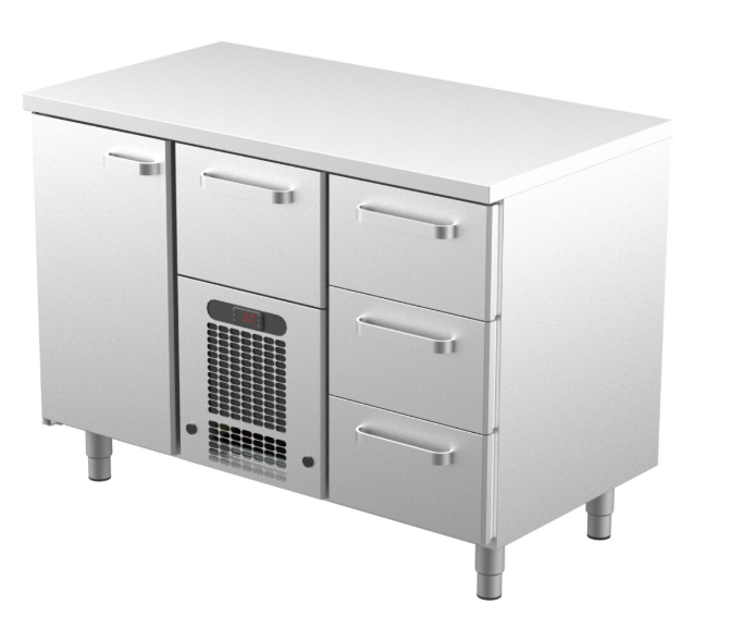 Laatikoiden kapasiteetti on 1 x GN 1/1-200 ja 3 x GN 1/1-150.