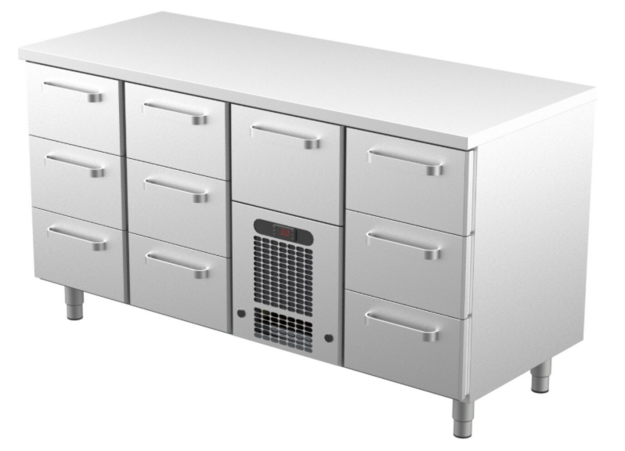 10 kpl kylmävetolaatikkoja, joiden kapasiteetti on GN 1/1-150.