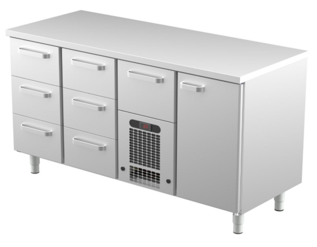 1 kpl kylmäkaappi ja 7 kpl kylmävetolaatikkoja.