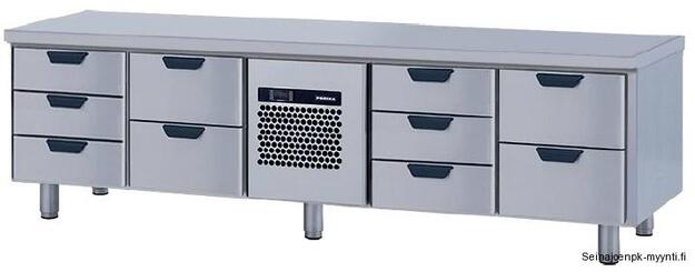 Kylmävetolaatikosto matala Restmec VLG 20012 Ulkomitat: (l) 2000 x (s) 650 x (k) 650 mm.Sähköteho: 0,4 kW / 230 V.Kalusteen päällä on ruostumattomasta teräksestä oleva kansi, joka soveltuu erinomaisesti laitetasoksi.12 kpl kylmävetolaatikkoja, joiden kapasiteetti on GN 1/1-100. OSTA Kylmävetolaatikosto matala Porkka CL-GNL-2-CX Ulkomitat: (l) 860 x (s) 650 x (k) 650 mm.Sähköteho: 0,25 kW / 230 V.Kalusteen päällä on ruostumattomasta teräksestä oleva kansi, joka soveltuu erinomaisesti laitetasoksi.2 kpl kylmävetolaatikkoja, joiden kapasiteetti on GN 1/1-150. OSTA Kylmävetolaatikosto matala Porkka CL-GNL-2-2-CX-2-2 Ulkomitat: (l) 2060 x (s) 650 x (k) 650 mm.Sähköteho: 0,25 kW / 230 V.Kalusteen päällä on ruostumattomasta teräksestä oleva kansi, joka soveltuu erinomaisesti laitetasoksi.8 kpl kylmävetolaatikkoja, joiden kapasiteetti on GN 1/1-150. OSTA Kylmävetolaatikosto matala Restmec VLG 802 Ulkomitat: (l) 800 x (s) 650 x (k) 650 mm.Sähköteho: 0,4 kW / 230 V.Kalusteen päällä on ruostumattomasta teräksestä oleva kansi, joka soveltuu erinomaisesti laitetasoksi.2 kpl kylmävetolaatikkoja, joiden kapasiteetti on GN 1/1-150. OSTA Kylmävetolaatikosto matala Porkka CL-GNL-3-CX Ulkomitat: (l) 860 x (s) 650 x (k) 650 mm.Sähköteho: 0,25 kW / 230 V.Kalusteen päällä on ruostumattomasta teräksestä oleva kansi, joka soveltuu erinomaisesti laitetasoksi.3 kpl kylmävetolaatikkoja, joiden kapasiteetti on GN 1/1-100. OSTA