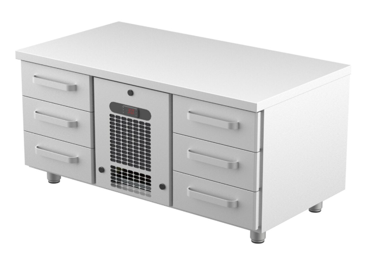 6 kpl kylmävetolaatikkoja, joiden kapasiteetti on GN 1/1-100.