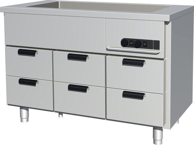 Tehokkaan eristyksen ansiosta lämpökalusteet eivät säteile ympäristöön turhaa lämpöä. Puhaltimella tehostettu ilmankierto takaa tasaisen lämminilmakierron vetolaatikoissa. Kalusteet on valmistettu korkealaatuisista komponenteista ja niiden näkyvät sisä- ja ulkopinnat ovat ruostumatonta terästä.