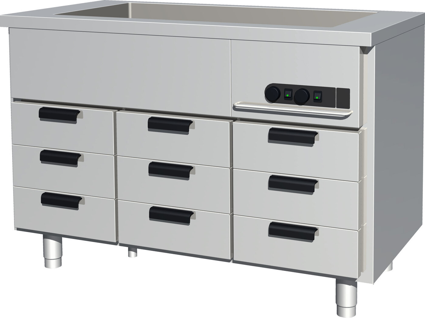 Tehokkaan eristyksen ansiosta lämpökalusteet eivät säteile ympäristöön turhaa lämpöä. Puhaltimella tehostettu ilmankierto takaa tasaisen lämminilmakierron vetolaatikoissa. Kalusteet on valmistettu korkealaatuisista komponenteista ja niiden näkyvät sisä- ja ulkopinnat ovat ruostumatonta terästä.
