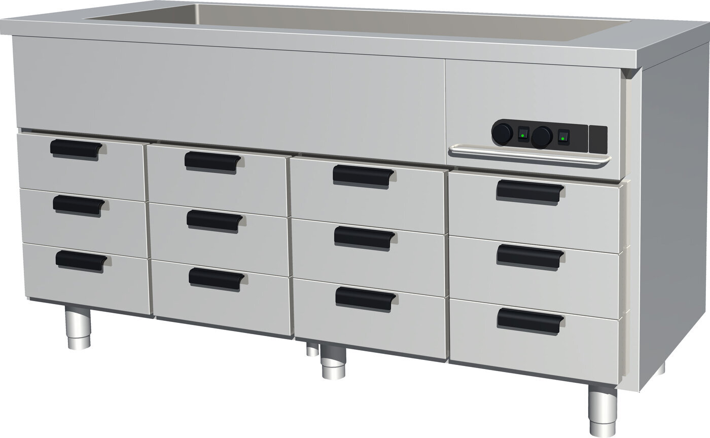 Tehokkaan eristyksen ansiosta lämpökalusteet eivät säteile ympäristöön turhaa lämpöä. Puhaltimella tehostettu ilmankierto takaa tasaisen lämminilmakierron vetolaatikoissa. Kalusteet on valmistettu korkealaatuisista komponenteista ja niiden näkyvät sisä- ja ulkopinnat ovat ruostumatonta terästä.