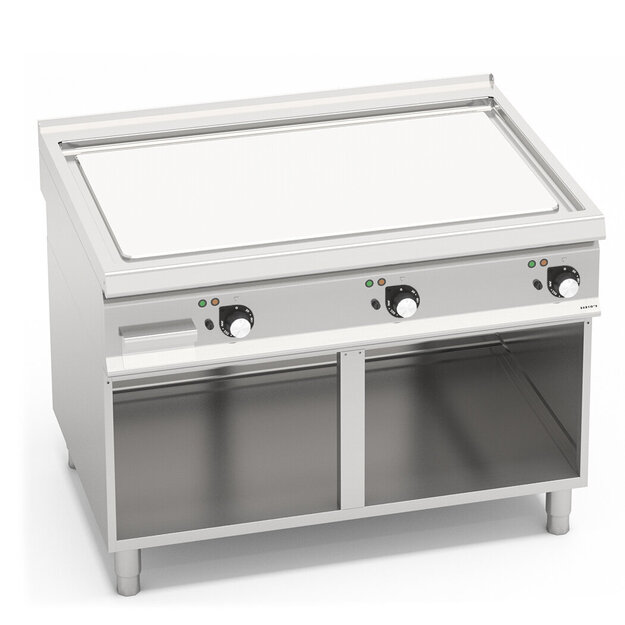 Kaksikomponenttinen 18 mm:n keittolevy, jossa yhdistyvät teräslevy lämmönsiirron ja tasaisuuden optimoimiseksi sekä 3 mm:n pintakerros kiillotettua AISI 316 -ruostumatonta terästä, joka helpottaa puhdistusta ja vähentää säteilyä, mikä parantaa käyttömukavuutta.