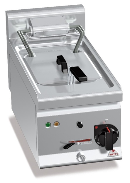 Laitteet » Lämminkeittiö » Rasvakeittimet » Rasvakeitin Berto's E6F10-3BS Rasvakeitin Berto's E6F10-3BS Ulkomitat: (l) 300 x (s) 600 x (k) 290 / 410 mm.Sähköteho: 9,0 kW / 400 V.Öljytilavuus: 10 litraa.Tuotekoodi: 134. Lisätiedot › Tarjouksen mukaan Määrä Lisää tarjouspyyntöön Ulkomitat: (l) 300 x (s) 600 x (k) 290 / 410 mm.Sähköteho: 9,0 kW / 400 V.Öljytilavuus: 10 litraa.Lämpötilansäätö +100...195°C.Esilämmitys tapahtuu noin 6 minuutissa (+20...+190°C).Saranoidut ylösnostettavat vastukset altaan puhdistusta varten.Rasvakeittimessä on öljynpoistoon hana etupaneelissa.Varustettu ylikuumenemissuojalla.Kuvasta poiketen rasvakeitin varustettu kahdella puolikkaalla korilla.Sisältää kannen altaan päälle.Tuotekoodi: 134. Näytä lisää tuotteitaRasvakeittimet tuoteryhmästä Tämäkin laite sopivasti rahoituksella Tutustu ›