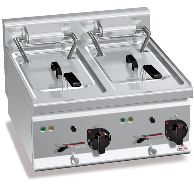 Automaattirasvakeitin korinostimilla FriFri Touch 412, yksi altainen Älykäs ohjelmointi, 24 esiohjelmoitavaa muistipaikkaa.Ulkomitat: (l) 398 x (s) 650 x (k) 994 mm.Sähköliitäntä: 18,0 kW / 400 V.Öljytilavuus: 17,0 – 20,5 litraa.Kapasiteetti: 40,0 kg / tunti. OSTA Rasvakeitin Redfox FE 77 VT Ulkomitat: (l) 570 x (s) 420 x (k) 370 mm.Sähköteho: 2 x 6,0 kW / 400 V.Öljytilavuus: 2 x 8 litraa.Tuotekoodi: 130. OSTA Automaattirasvakeitin korinostimilla FriFri Touch 622, kaksi altainen Älykäs ohjelmointi, 24 esiohjelmoitavaa muistipaikkaa per allas.Ulkomitat: (l) 592 x (s) 650 x (k) 994 mm.Sähköliitäntä: 2 x 15,0 kW / 400 V.Öljytilavuus: 2 x 12,5 – 14,5 litraa.Kapasiteetti: 2 x 32,0 kg / tunti. OSTA Rasvakeitin Lincat DF-618, kaksi altainen Ulkomitat: (l) 600 x (s) 600 x (k) 335 mm.Sähköteho: 2 x 9,0 kW / 400 V.Öljytilavuus: 2 x 9 litraa.Tuotekoodi: 112. OSTA Automaattirasvakeitin korinostimilla FriFri Precision 633, kolme altainen Yhdellä ohjelmapaikalla per allas.Ulkomitat: (l) 600 x (s) 650 x (k) 994 mm.Sähköliitäntä: 3 x 9,0 kW / 400 V.Öljytilavuus: 3 x 7,5 – 9,0 litraa.Kapasiteetti: 3 x 20,0 kg ranskanperunaa. OSTA