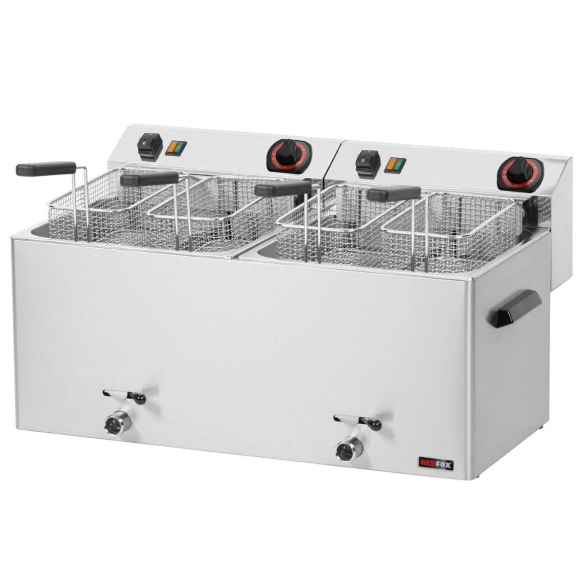Automaattirasvakeitin korinostimilla FriFri Precision 412, yksi altainen Yhdellä ohjelmapaikalla.Ulkomitat: (l) 400 x (s) 650 x (k) 994 mm.Sähköliitäntä: 18,0 kW / 400 V.Öljytilavuus: 17,0 - 20,5 litraa.Kapasiteetti: 40,0 kg ranskanperunaa. OSTA Rasvakeitin Redfox FE 77 VT Ulkomitat: (l) 570 x (s) 420 x (k) 370 mm.Sähköteho: 2 x 6,0 kW / 400 V.Öljytilavuus: 2 x 8 litraa.Tuotekoodi: 130. OSTA Automaattirasvakeitin korinostimilla FriFri Precision 622, kaksi altainen Yhdellä ohjelmapaikalla per allas.Ulkomitat: (l) 600 x (s) 650 x (k) 994 mm.Sähköliitäntä: 2 x 15,0 kW / 400 V.Öljytilavuus: 2 x 12,5 – 14,5 litraa.Kapasiteetti: 2 x 32,0 kg ranskanperunaa. OSTA Rasvakeitin Redfox FE 66/3 ELT Ulkomitat: (l) 660 x (s) 600 x (k) 290 mm.Sähköteho: 9,0 kW / 400 V.Öljytilavuus: 16 litraa.Tuotekoodi: 117. OSTA Rasvakeitin Redfox FE 44 S Ulkomitat: (l) 360 x (s) 420 x (k) 300 mm.Sähköteho: 2 x 3,0 kW / 230 V.Öljytilavuus: 2 x 5 litraa.Tuotekoodi: 1021. OSTA