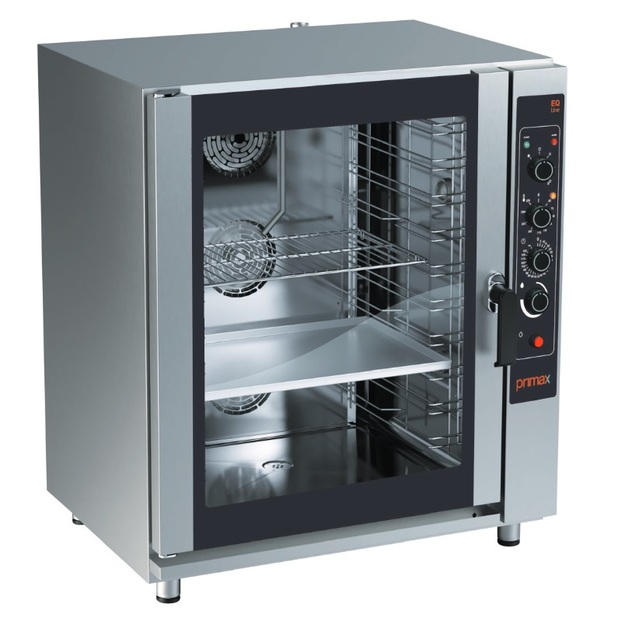 Laitteet » Lämminkeittiö » Yhdistelmäuunit » Yhdistelmäuuni Primax Easy Quality EQ-DME910-HS Yhdistelmäuuni Primax Easy Quality EQ-DME910-HS Ulkomitat: (l) 930 x (s) 802 x (k) 1075 mm.Sähköteho: 13,9 kW / 400 V.Kapasiteetti: 10 x GN 1/1-65.Käy myös 600 x 400 mm mitoitetut leipomopellit.Analogiset käyttökytkimet. Lisätiedot › Tarjouksen mukaan Määrä Lisää tarjouspyyntöön Ulkomitat: (l) 930 x (s) 802 x (k) 1075 mm.Sähköteho: 13,9 kW / 400 V.Sulakkeet 3 x 25 A.Analogiset käyttökytkimet.Kapasiteetti: 10 x GN 1/1.Johdeväli 75 mm.Käy myös 600 x 400 mm mitoitetut leipomopellit.Uunissa on 4 toimintoa:– Kiertoilmakypsennys.– Höyrykeitto.– Edellisten yhdistelmäpaisto.– Kammion jäähdytystoiminto.Termostaatti +50...+270°C.Puhallinmoottori automaattisesti suuntaa kääntävä.Uunikammiossa on pyöristetyt reunat puhdistuksen helpottamiseksi.Ovessa on kaksoislasi joka on helppo puhdistaa.Helposti vaihdettava ”snap-on” ovitiiviste.Uunissa on sisävalo. Näytä lisää tuotteitaYhdistelmäuunit tuoteryhmästä Tämäkin laite sopivasti rahoituksella Tutustu ›