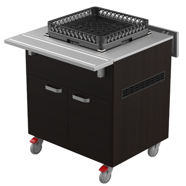 Korijakelinvaunu Restmec BTV 800 Ulkomitat: (l) 800 x (s) 620 / 980 x (k) 900 mm.Hissijakelin 500 x 500 mm juomalasikoreille.Värivaihtoehdot: wenge (kuvassa), tammi, tumma tammi, pähkinä, pyökki, koivu ja valkoinen.Vaunussa on neljä kääntyvää pyörää, joista kaksi on lukittavia. OSTA