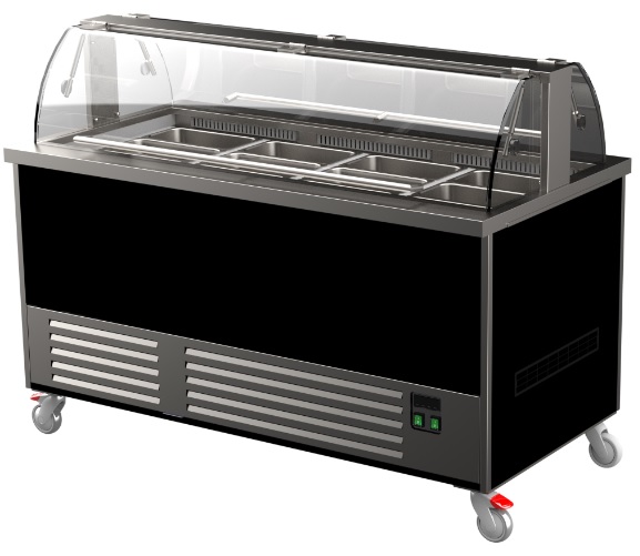 Laitteet » Tarjoilulaitteet » Buffetvaunut » Salaattibaarit » Salaattibaari Restmec MBKL 4 Salaattibaari Restmec MBKL 4 Ulkomitat: (l) 1550 x (s) 799 x (k) 874 / 1183 mm.Liitäntäteho: 0,4 kW / 230 V.Kapasiteetti: 4 x GN 1/1-150.Molemmilla puolilla ylösnostettavat luukut. Lisätiedot › Tarjouksen mukaan Määrä Lisää tarjouspyyntöön Laadukas Restmec MBKL 4 salaattibaarivaunu soveltuu erinomaisesti tarjoilukalusteeksi ruokakauppoihin, ravintoloihin ja take away pisteisiin. Kaasujousilla varustetut ylösnostettavat luukut toimivat myös pisarasuojina.Ulkomitat: (l) 1550 x (s) 799 x (k) 874 / 1183 mm.Liitäntäteho: 0,4 kW / 230 V.Kapasiteetti: 4 x GN 1/1-150.Mukana välipienat pienemmille gn-astioille.Käyttölämpötila +2...+8°C.Tuuletusjäähdytysjärjestelmä.Vaunun molemmilla puolilla ylösnostettavat luukut.Luukut jäävät aukiasentoon asiakkaan ottaessa salaattivaunusta, jonka jälkeen luukut ovat suljettavissa.Vaunussa altaaseen kohdistettu valaisin.Kalusteessa selkeä digitaalisella näytöllä varustettu lämpötilansäädin.Automaattinen sulatus.Kylmäaine R448A.Laminaattikotelo.Vaunu on helposti liikuteltavissa neljän pyörän ansiosta, joista 2 kpl on lukittavissa.Huom! Lisävarusteena vaunun toiseen tai molempiin päätyihin on saatavilla tarvikekori. Tarvikekoritarve on ilmoitettava tilauksen yhteydessä. Tarvikekori ei sisälly vakiotoimitukseen. Näytä lisää tuotteitaSalaattibaarit tuoteryhmästä Tämäkin laite sopivasti rahoituksella Tutustu ›