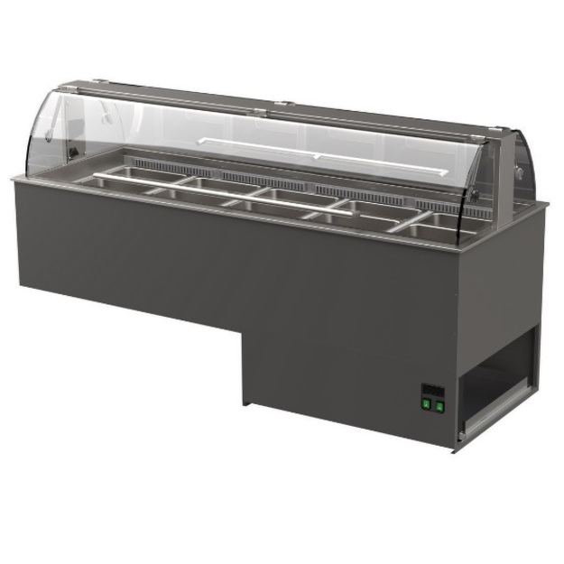 Laitteet » Tarjoilulaitteet » Buffetvaunut » Salaattibaarit » Salaattibaari Restmec MBKL 5 Drop In, tasoon upotettava malli Salaattibaari Restmec MBKL 5 Drop In, tasoon upotettava malli Ulkomitat: (l) 1902 x (s) 713 x (k) 309 mm.Tason alle uppoavan rungon korkeus on 716 mn.Asennusaukon koko: (l) 1887 x (s) 698 mm.Liitäntäteho: 0,4 kW / 230 V.Kapasiteetti: 5 x GN 1/1-150. Lisätiedot › Tarjouksen mukaan Määrä Lisää tarjouspyyntöön Laadukas MBKL 5 Drop in soveltuu erinomaisesti olemassa olevan kalusteen tasoon upotettavaksi tarjoilukalusteeksi ruokakauppoihin, ravintoloihin ja take away pisteisiin. Kaasujousilla varustetut ylösnostettavat luukut toimivat myös pisarasuojina.Ulkomitat: (l) 1902 x (s) 713 x (k) 309 mm.Tason alle uppoavan rungon korkeus on 716 mn.Asennusaukon koko: (l) 1887 x (s) 698 mm.Liitäntäteho: 0,4 kW / 230 V.Kapasiteetti: 5 x GN 1/1-150.Käyttölämpötila +2...+8°C.Tuuletusjäähdytysjärjestelmä.Salaattibaarin molemmilla puolilla ylösnostettavat luukut.Luukut jäävät aukiasentoon asiakkaan ottaessa salaattialtaasta, jonka jälkeen luukut ovat suljettavissa.Vaunussa altaaseen kohdistettu valaisin.Kalusteessa selkeä digitaalisella näytöllä varustettu lämpötilansäädin.Automaattinen sulatus.Kylmäaine R448A. Näytä lisää tuotteitaSalaattibaarit tuoteryhmästä Tämäkin laite sopivasti rahoituksella Tutustu ›