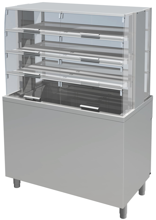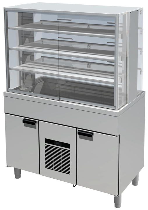 Kalusteet ovat GN-mitoitettuja. Lisähyötyä antavat myyjän puolella olevat alakaapit, jotka toimivat lisäsäilytystilana. Tämä mahdollistaa nopean hyllyjen täydennyksen ruuhka-aikana.