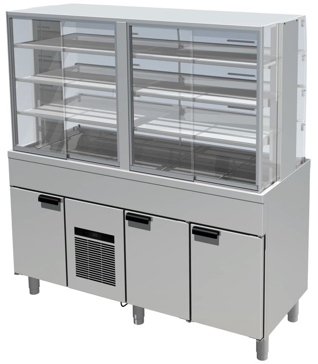 Kalusteet ovat GN-mitoitettuja. Lisähyötyä antavat myyjän puolella olevat alakaapit, jotka toimivat lisäsäilytystilana. Tämä mahdollistaa nopean hyllyjen täydennyksen ruuhka-aikana.