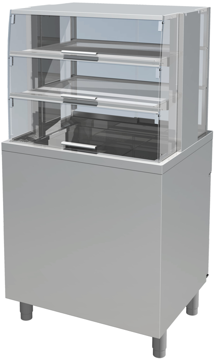 Kalusteet ovat GN-mitoitettuja. Lisähyötyä antaa myyjän puolella oleva alakaappi, joka toimii lisäsäilytystilana. Tämä mahdollistaa nopean hyllyjen täydennyksen ruuhka-aikana.