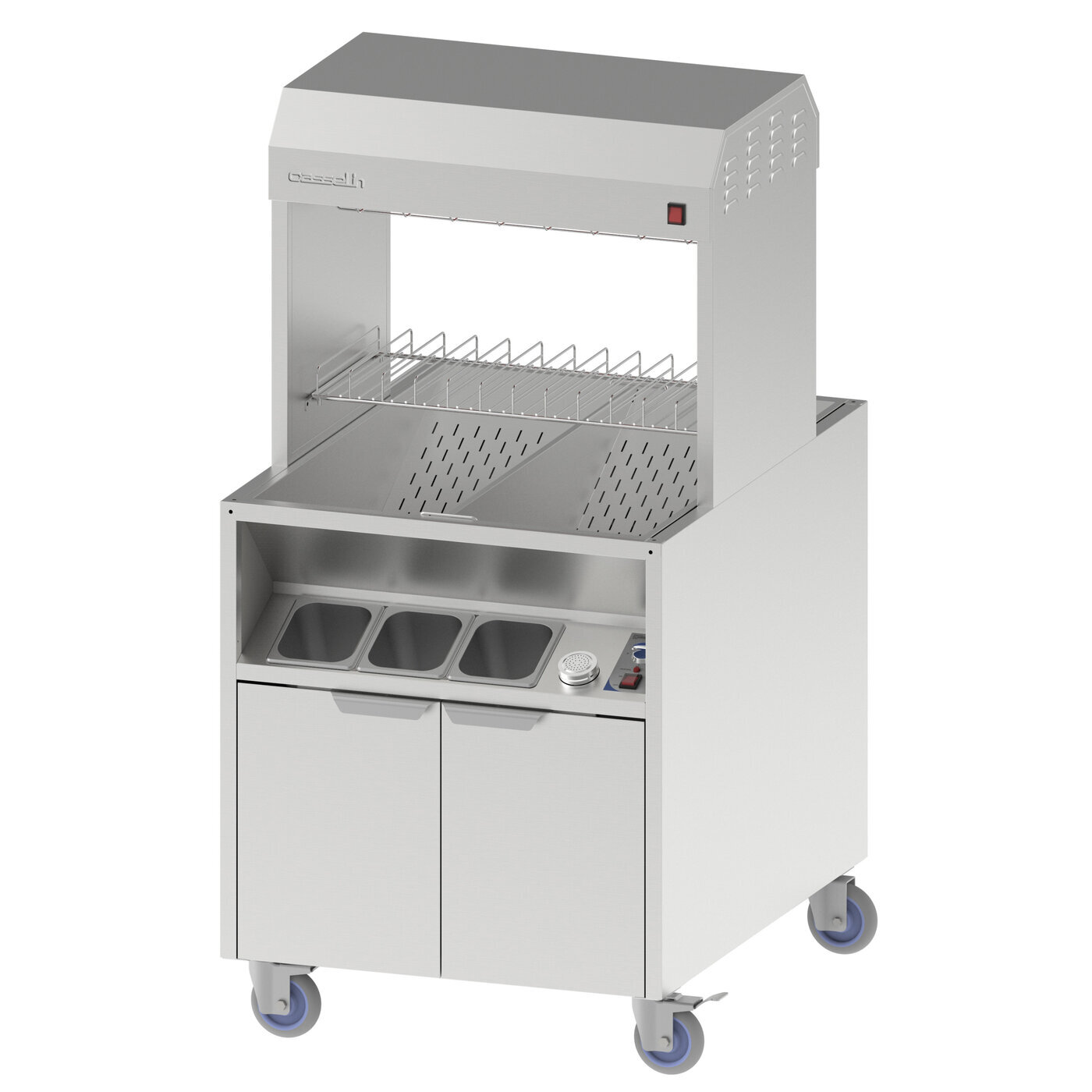Jalustassa 6 x GN 1/6 -150mm astioita (3kpl per puoli)