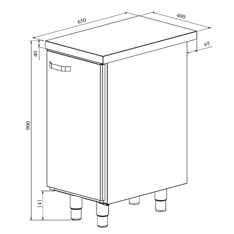 RST kalusteet » Pöydät » Alakaapilliset pöydät » Työpöytä alakaapilla Restmec UB KSK 400, oikeakätinen Työpöytä alakaapilla Restmec UB KSK 400, oikeakätinen Ulkomitat: (l) 400 x (s) 650 x (k) 900 mm.Kaapissa on 1 kpl säädettävä hylly + pohjataso.Pöydän alla säätöjalat.Valmistettu ruostumattomasta teräksestä. Lisätiedot › Tarjouksen mukaan Määrä Lisää tarjouspyyntöön Ulkomitat: (l) 400 x (s) 650 x (k) 900 mm.Kaapissa on 1 kpl säädettävä hylly + pohjataso.Kaapin ovenkätisyys oikea (saranat oikealla).Pöydän alla säätöjalat.Pöydän korkeussäätöväli on 855-915 mm.Valmistettu ruostumattomasta teräksestä.Työpöytään on mahdollista tilata lisävarusteena takaseinä. Muuten pöytä on normaalisti takaa avoin.Kaappiin on mahdollista tilata lisähylly. Näytä lisää tuotteitaAlakaapilliset pöydät tuoteryhmästä Tämäkin laite sopivasti rahoituksella Tutustu ›