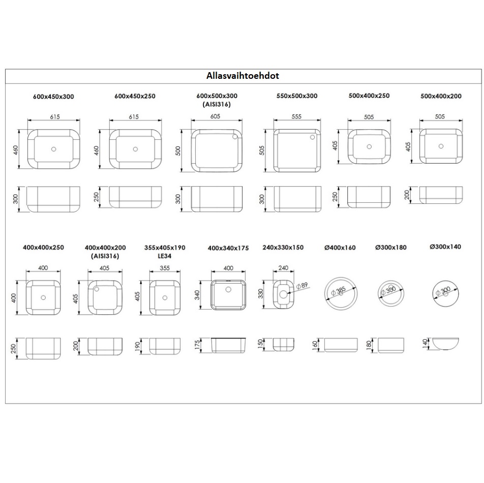 Allaspöytä Restmec TLV Allaspöydät ovat saatavana seuraavasti:Leveys 400-2900 mm.Syvyys 500-900 mm.Korkeus 800-900 mm.Valikoimassa on eri kokoisia altaita. OSTA