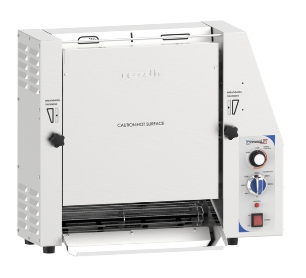 Sämpyläpaahdin Casselin on tehokas valinta ammattikäyttöön, jonka tuotantokapasiteetti on jopa 3600 sämpyläviipaletta (1800 hampurilaista) tunnissa. Paahtoaika on 8 sekuntia.